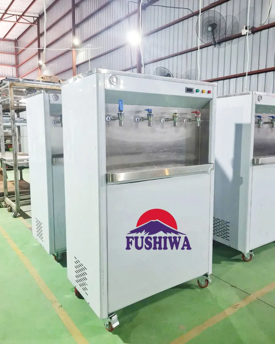 Có tủ bảo vệ, 4 vòi lấy nước 1 vòi Nóng – 3 vòi Nguội Có bánh xe đẩy dễ dàng |